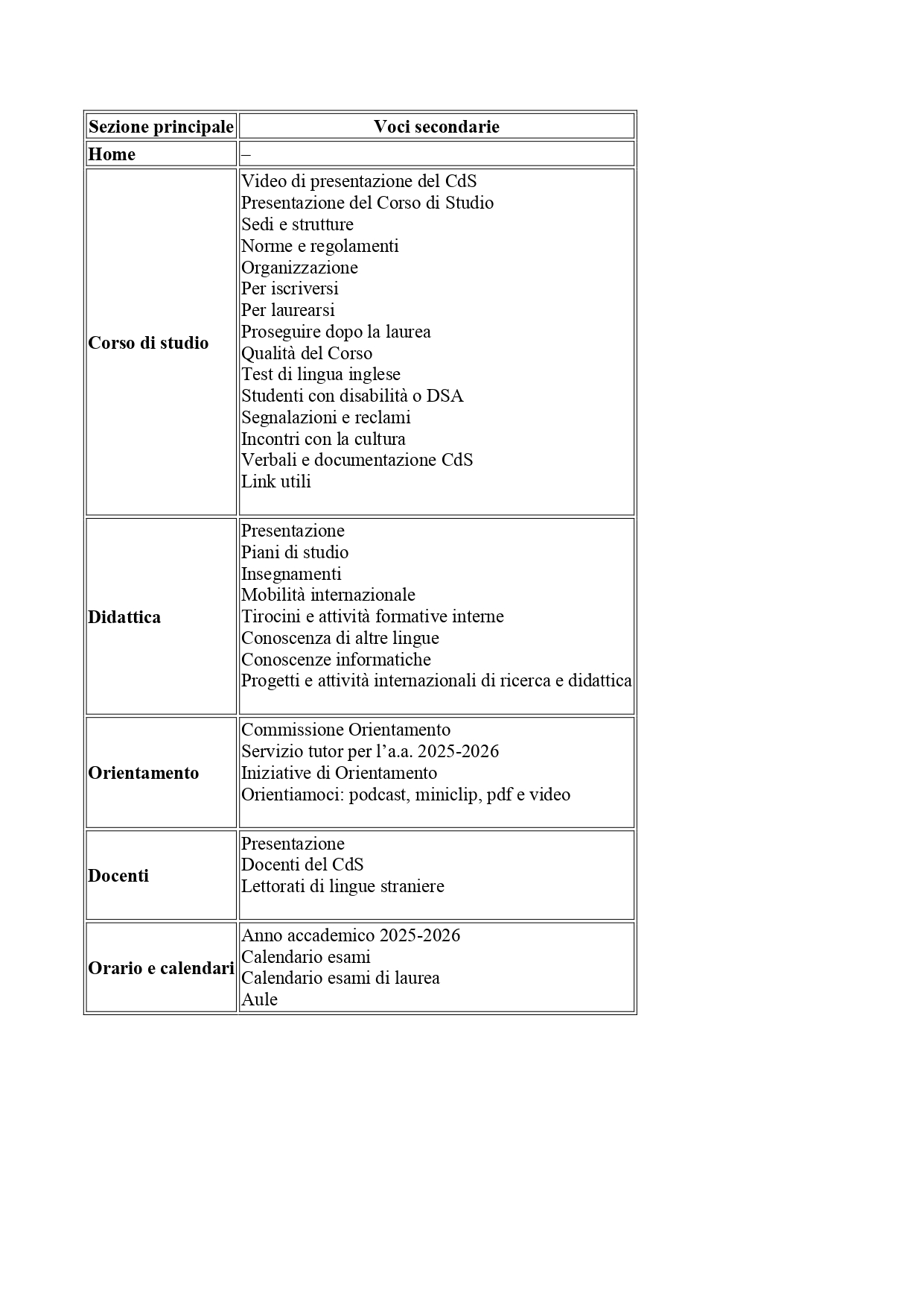 Mappa del sito del Corso di Studi in Lingue, Letterature e Studi Interculturali